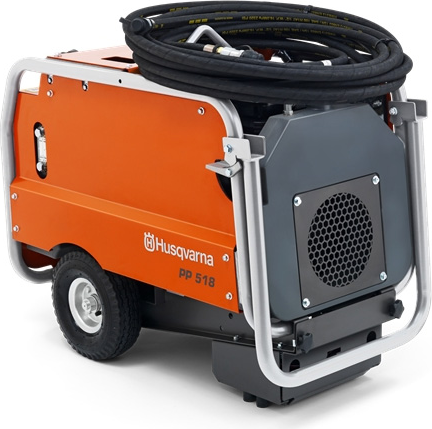 Гидравлическая станция Husqvarna PP 518 с бензиновым двигателем для такого гидравлического оборудования, как стенорезная машина Husqvarna WS 325, бурильная машина DM 406 H и резчики K 3600 MK II и K 2500.