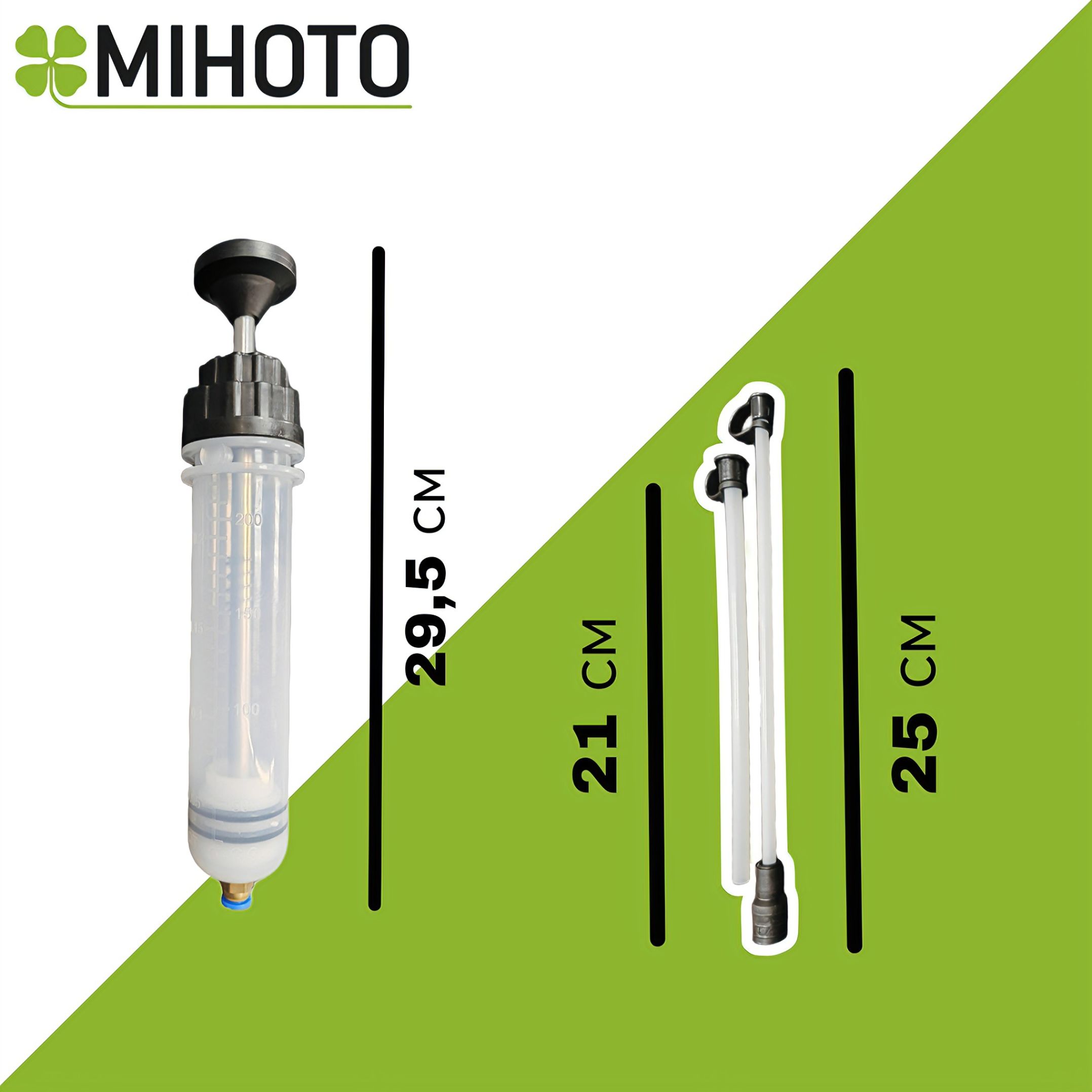 - Шприц Mihoto способен переносить жидкости высокой вязкости, что делает его идеальным для использования с моторным маслом, охлаждающей жидкостью, гидравлическими системами и цепным маслом в маслобаке бензопилы с узким горлышком. Он устойчив к химическим и масляным жидкостям, что позволяет использовать его для извлечения или замены моторных масел или смазочных материалов в различных транспортных средствах, сельскохозяйственном оборудовании, промышленных коробках передач и другой технике.